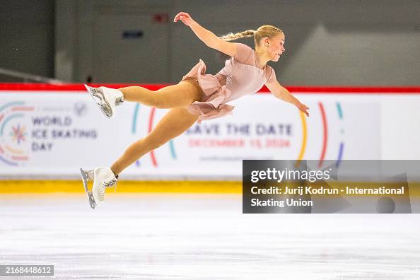 RIGA, LATVIA – AUGUST 30: Saedis Heba Gudmundsdottir of Iceland performs during the ISU Junior Grand Prix of Figure Skating at Volvo Sports Center, on August 30, 2024 in Riga, Latvia. (Photo by Jurij Kodrun – International Skating Union/International Skating Union via Getty Images)